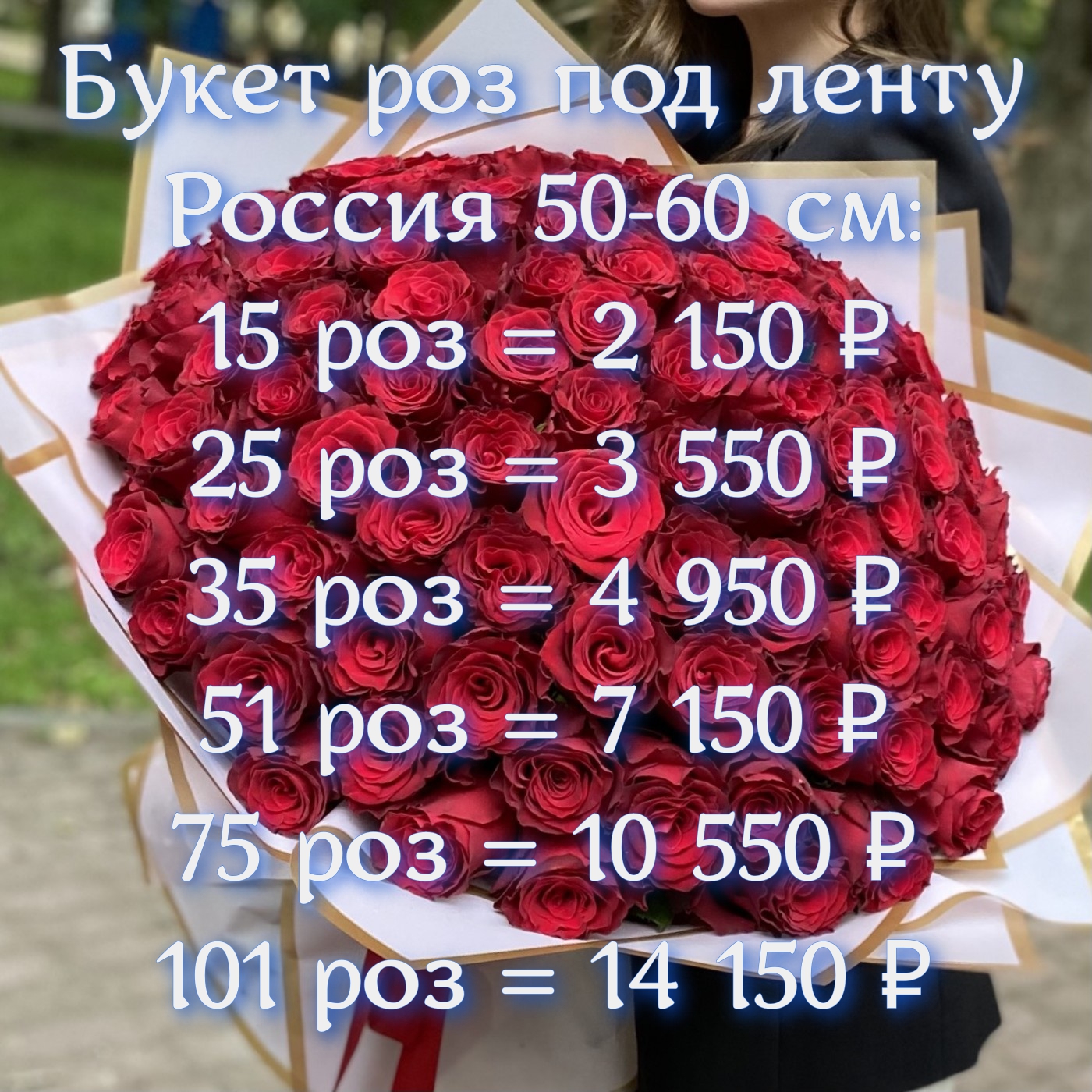 РОЗНИЧНАЯ ЦЕНА за розу 100 ₽ / шт. (с оформлением в букет поштучно, т.е. любое количество, например 7, 11, 15, 25, 51, 101 роза)