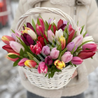 Особой популярностью пользуются букеты белых тюльпанов. Но вы можете выбрать композицию любой другой расцветки из каталога, представленного в этом разделе. По вашему желанию флористы интернет-магазина «УРАЛ РОЗА» украсят букет лентами или зеленью, а также праздничной упаковкой.