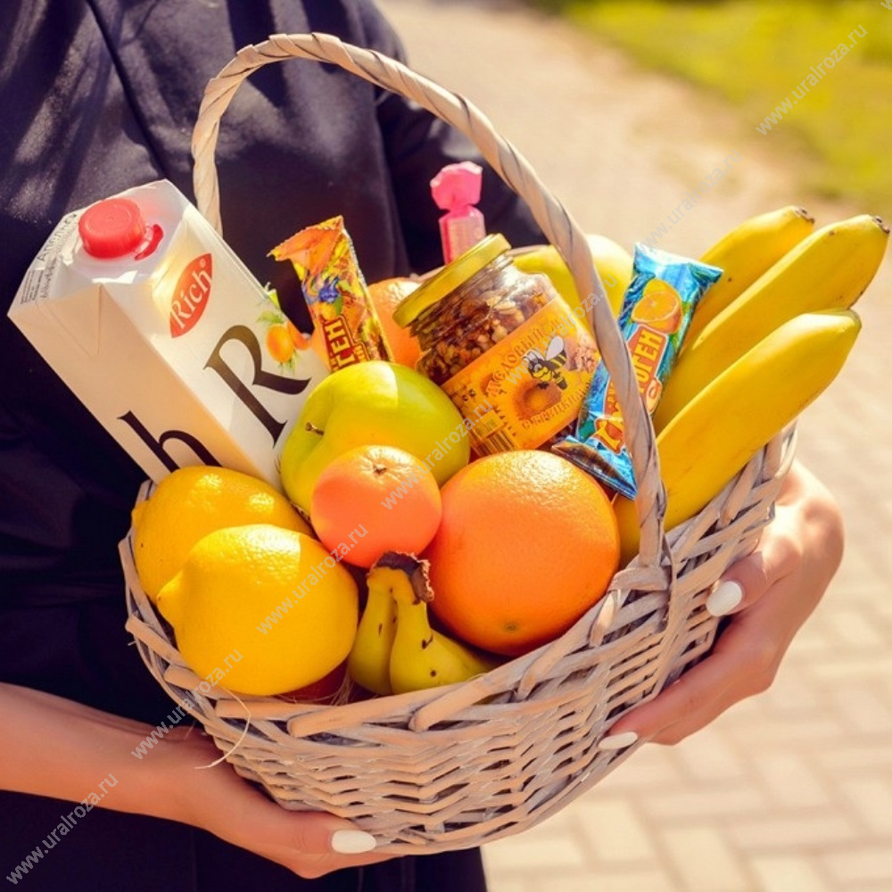 «Корзина плетённая „Будь здоров!“ — это полезная альтернатива привычным сладостям. В ней собраны все необходимые витамины: натуральный мёд, полезный гематоген и ваши любимые фрукты. А особое внимание мы уделили декору — корзина не только вкусная, но и красивая.»