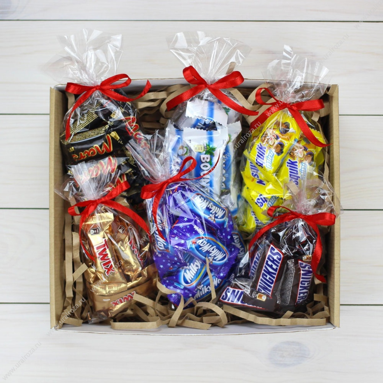 Какой же праздник без сладостей? А особенно без мини шоколадных батончиков: сникер, марс, баунти, несквик, твикс.