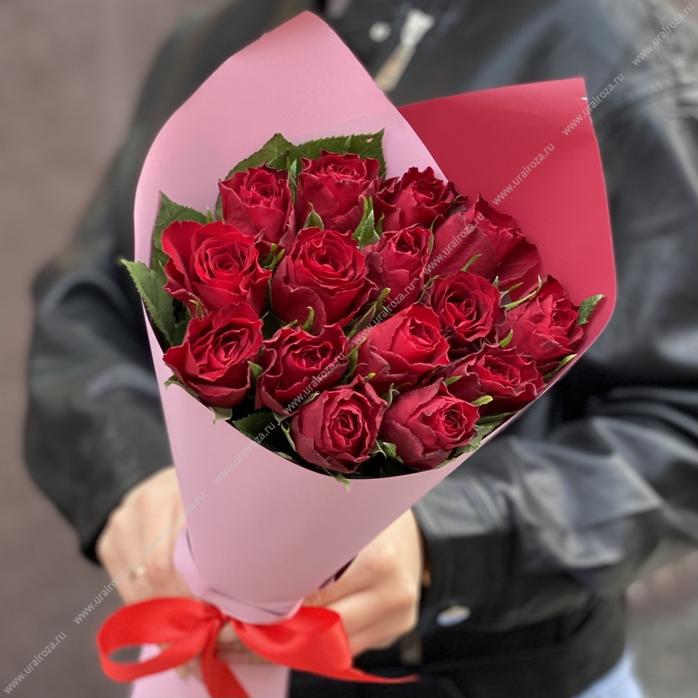 Букет из 15 красных роз - это беспроигрышный вариант для свидания или подарка коллеге в день рождения.